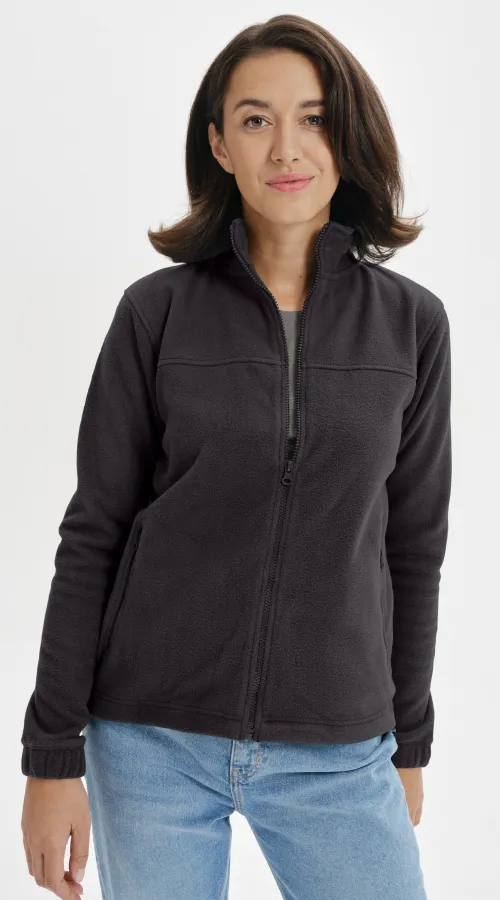 Lacná dámska bunda fleecová, ebenovo šedá, 2XL