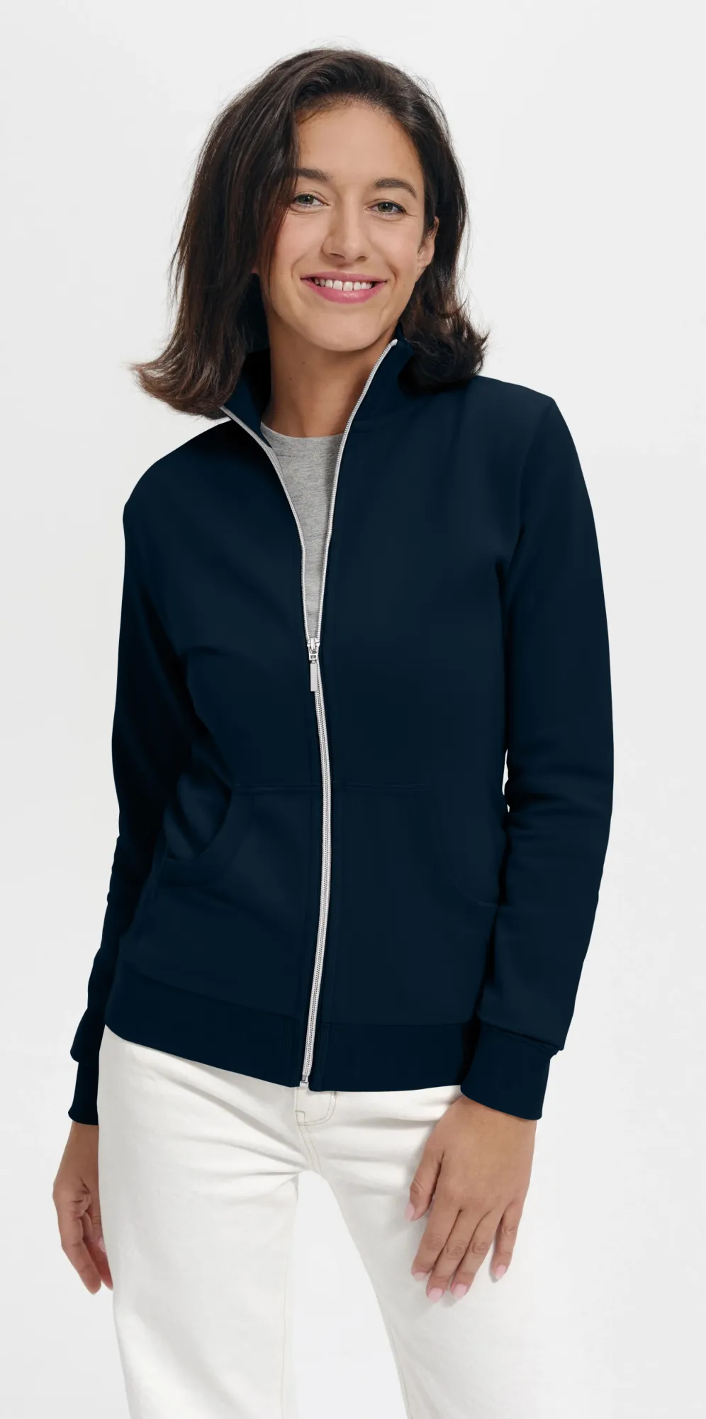 Lacná dámska mikina bez kapucne, tmavomodrá, M