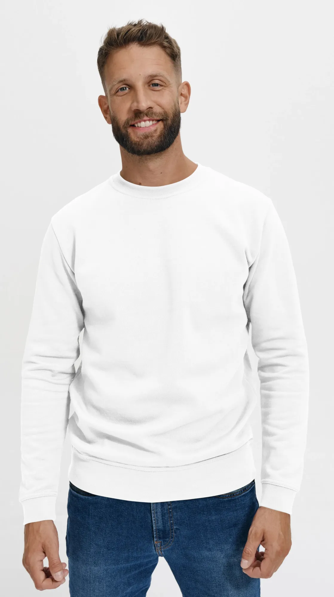 Lacná pánska/detska mikina s hlavicovým rukávom, bez kapucne, biela, 158 cm / 12 rokov