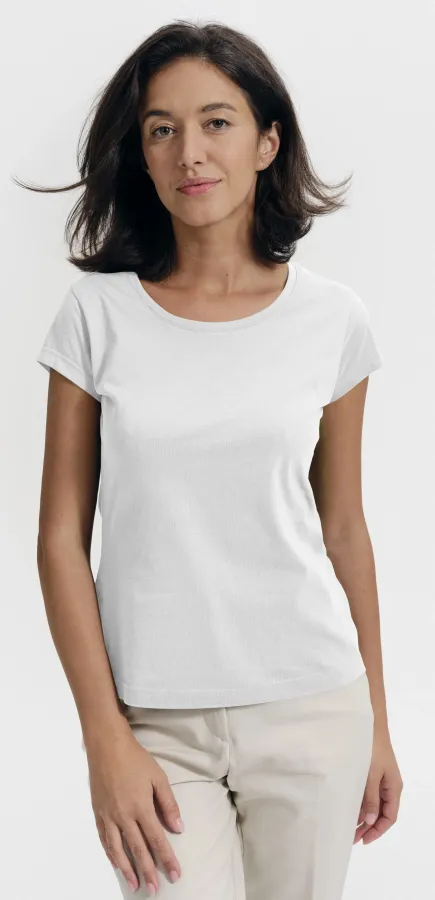 Lacné dámske tričko zúžené s okrúhlym výstrihom, biela, XS