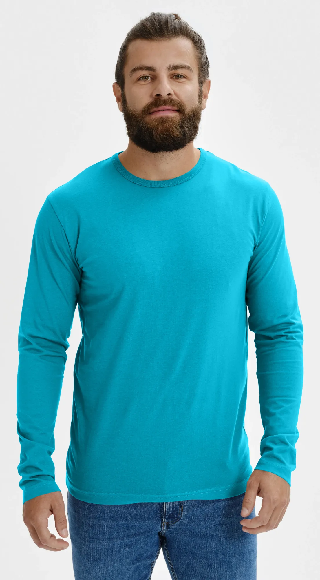 Lacné pánske tričko s dlhým rukávom, tyrkysová, S