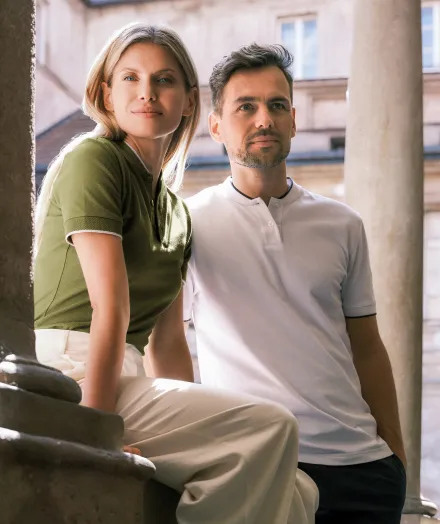 Párový koncept - oblečenie pre dámy a pánov v rovnakom štýle a farbách.